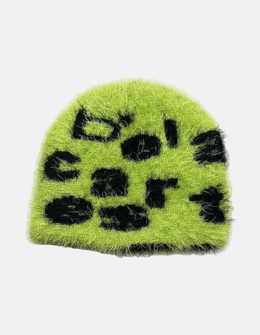 Our Green Fluffy Beanie, made from quality material, features black letters motifs and will perfectly complement your outfits. Shop now!